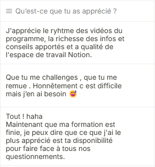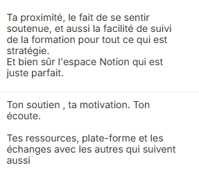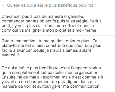 Le dashboard Notion est aussi un espace formateur où tu avances en asynchrone (à ton rythme, selon ton énergie et tes disponibilités)