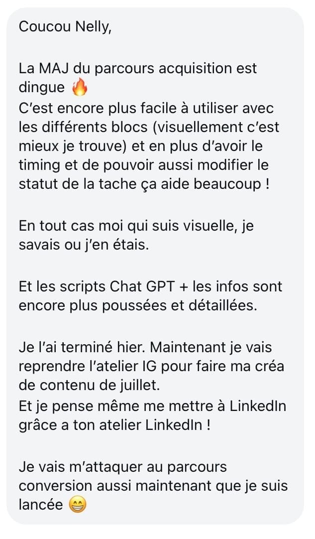 ✅ J’ai créé mon premier programme d’accompagnement lancé en juin 2024 et j’ai eu mes premiers clients au bout de 1 mois et demi uniquement grâce à ma com' organique