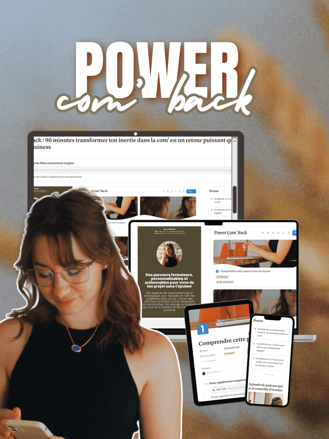 Ton système prêt à l'emploi parfait pour te remettre en mouvement dans ta com' après une pause peu importe la raison de ta pause (congés, remise en question, pivot...) et même si tu te sens pas encore totalement prête à revenir.